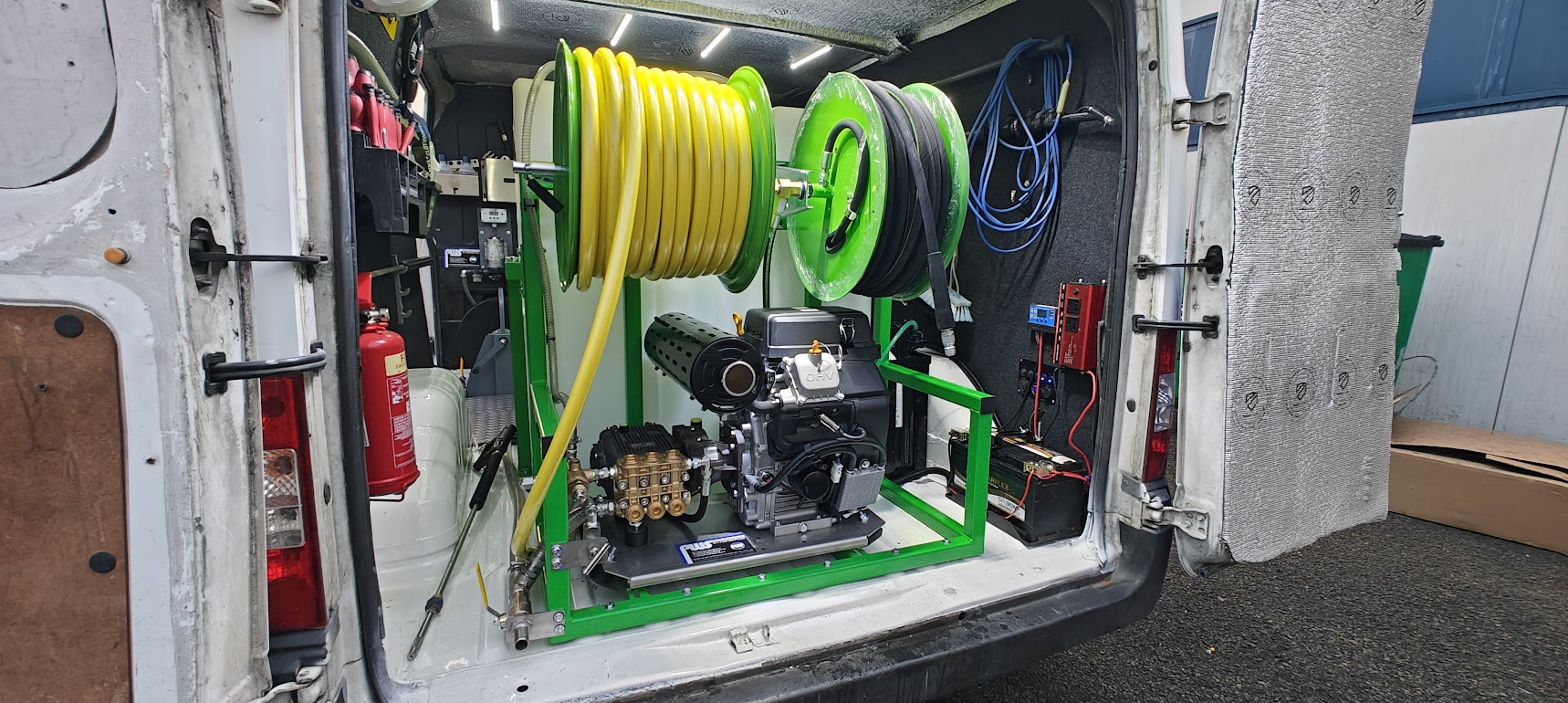 Outperforms standard machines in construction yards, plant hire, and heavy-equipment cleaning.